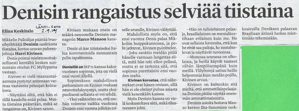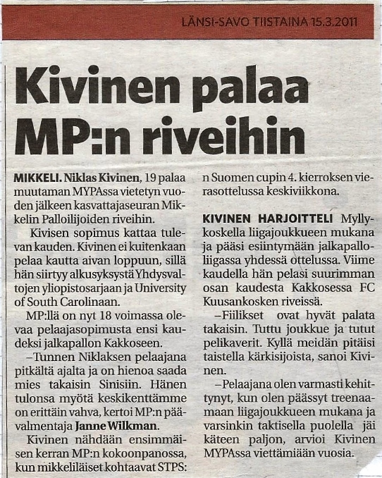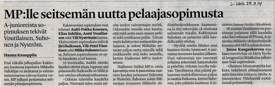 (14.7.2010, Länsi-Savo): MP:lle kaksi brassia: