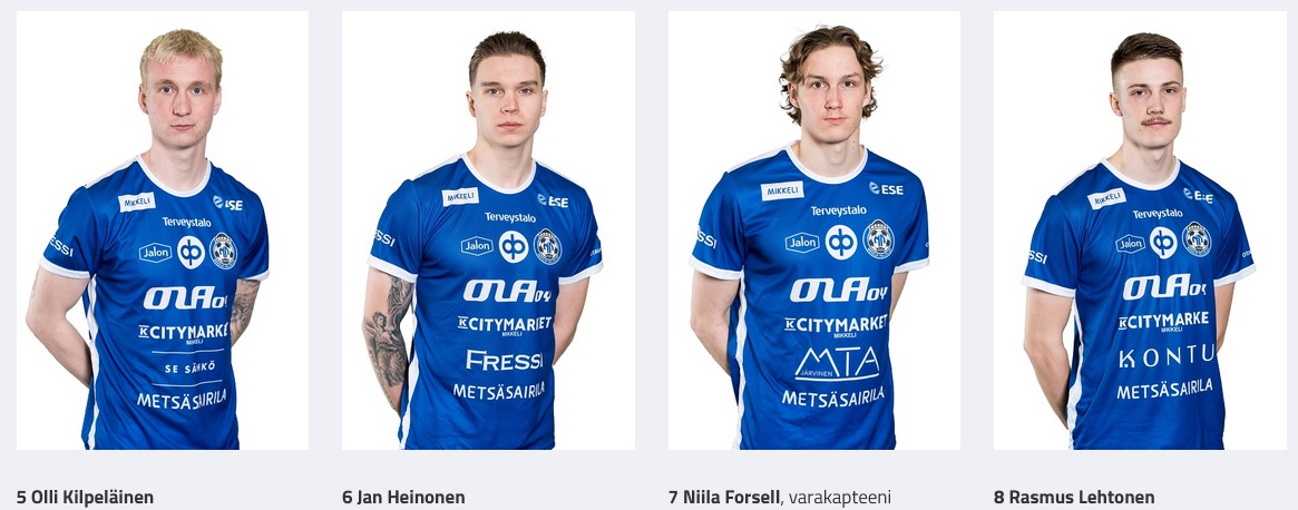 24 Eetu Hokkanen, 25 Timo Mattila, 26 Valtteri Kohvakka ja 28 Eetu Muinonen.