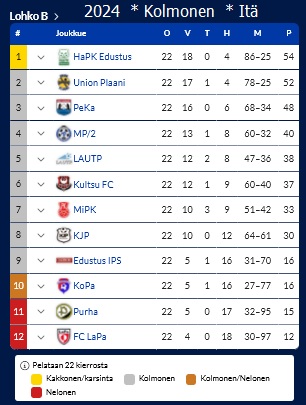 Vaihdot: 5 Murtonen Juha-Matti (46min ~ Haikonen), 25 Mattila Timo (53min ~ Mäenpää) ja 2 Peitola Justus (85min ~ Pastila).
