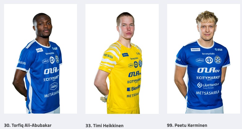 17 Tuukka Sirviö, 18 Tommi Rasinmäki, 19 Janne Reinikainen, 20 Joonas Laaksonen, 23 Tommi Lifländer,