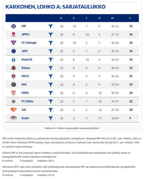(20.7.2010): MP kahdeksan peräkkäisen tappion putkessa jumbosijalla neljällä pisteellään: