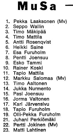Musan Salaman edustusjoukkue heti piirinsarjoihin Matti Virosen valmentamana.