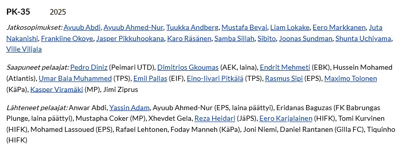 PK-35 (2020): Maalivahdit: