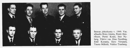 Seuran puheenjohtaja oli tuolloin Eero Virtanen. Johtokunnan jäsenistä erottuvat Heikki Kylänpää ja edustusjoukkueen valmentaja ja pelaaja Antero "Setori" Laiho.