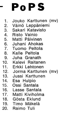 PoPS ~ maalintekijät viimeisellä kaudella 1973: Esa Hulpio 9, Kalevi Raitanen 8, Timo Mäkelä 3, Johannes Karttunen 2, Pekka Törönen 2, Jouko Karttunen 1, Matti Päivinen 1 ja Raimo Tuli 1.