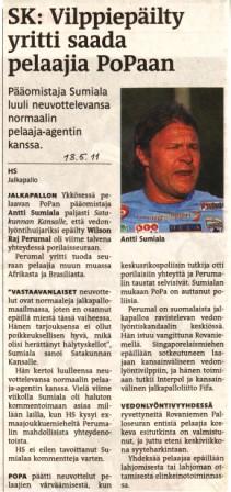 Helsingin Sanomat uutisoi 13.5.2011 Satakunnan Kansan tekemästä paljastuksesta, jossa PoPa:n pääomistaja Sumialan kerrottiin (ilmeisesti tietämättään) olleen tekemisissä surullisen kuuluisan singaporelaisen Wilson Raj Perumalin vedonlyöntihuijarin kanssa. Perumal oli tuomassa tavallisen pelaaja-agentin roolissa Poriin pelaajia mm. Afrikasta ja Brasiliasta.