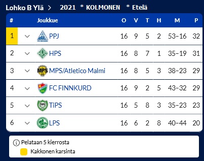 TiPS voitti lohkonsa 1/12 ja nousi parhaana lohkovoittajana suoraan Kakkoseen.