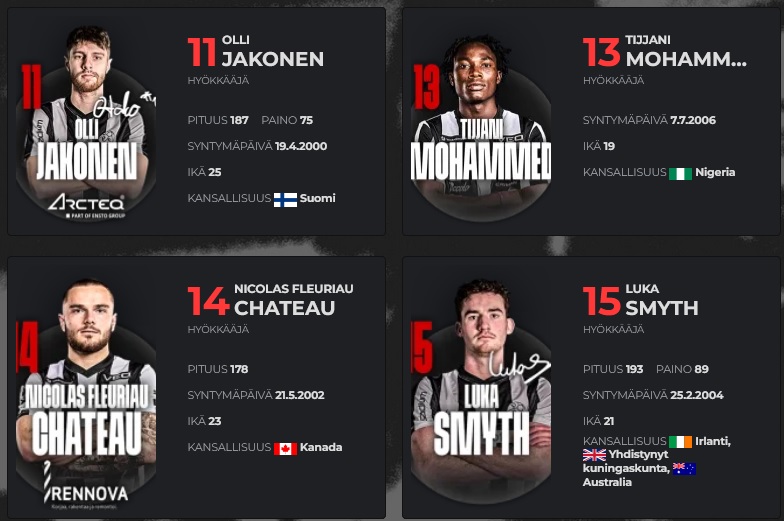 Vaihtopenkille jäivät: (mv) Teppo Marttinen, Josep ja Luka Nuorela ja Kalle Huhta. Päävalmentaja: Jussi Nuorela.