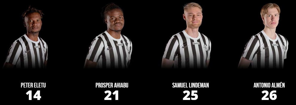 SJK: koko pelin pelanneet: (mv) Rasmus Reislahti, Martti Haukioja, Ahiabu, Antti-Ville Räisänen, Maissa Fall ja Yassine El Ouatki.
