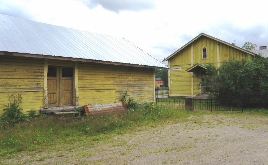 Myllymäen rautatieasema ja viereinen tavaramakasiini (16.7.2011):