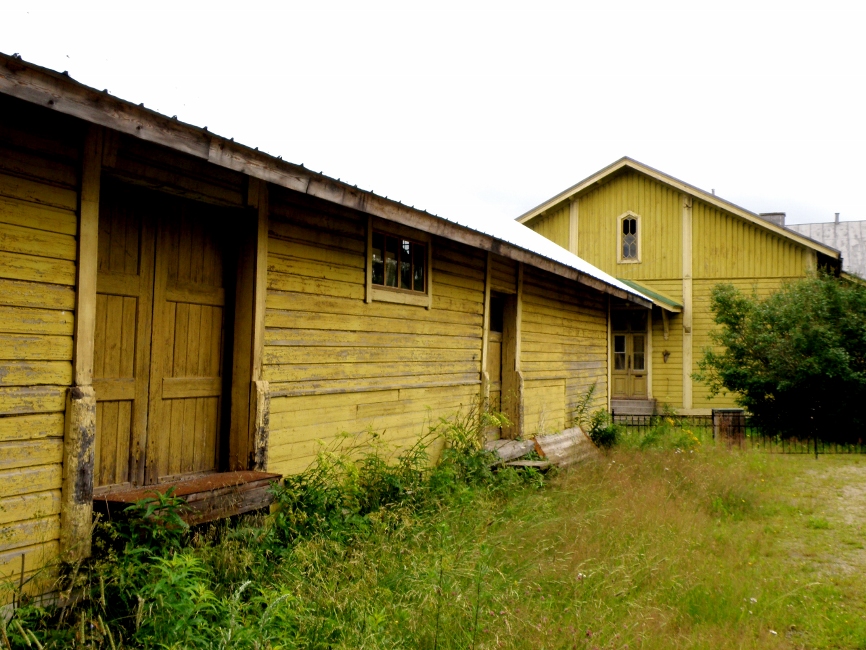 Myllymäen asema-alueen vanha varasto- ja puuliiterirakennus - 5.10.2014 (S&J). Ei juurikaan muutoksia.