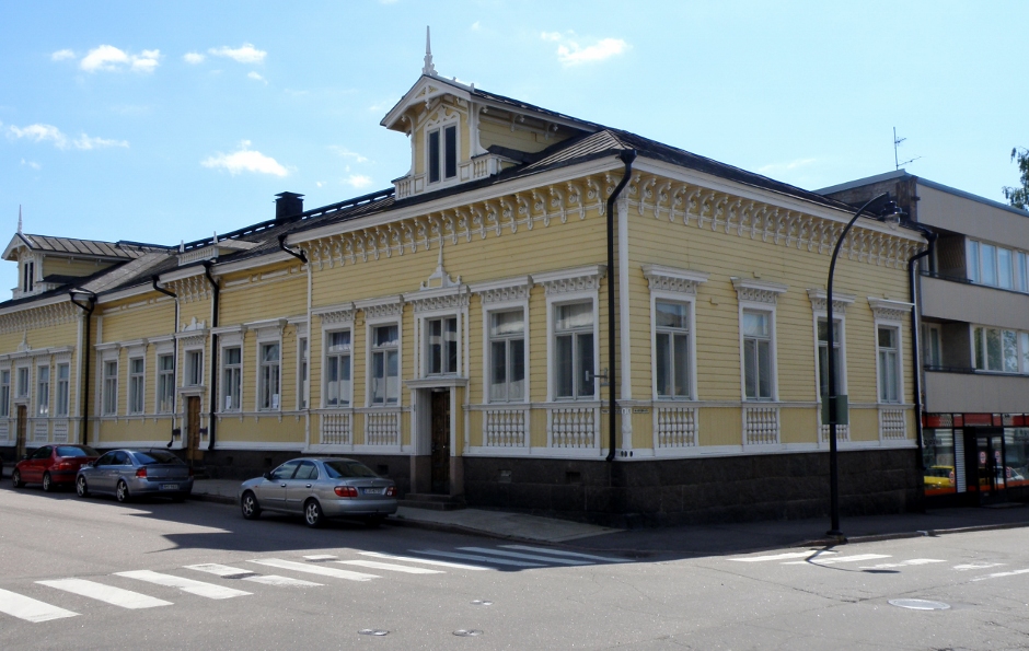 Tämä yksittäinen rakennus Rauhankadun ja Pikkuympyräkadun kulmauksessa nousi ensisilmäyksellä valtakunnalliselle suosikkirakennuksieni listalle. Kuvattu 19.4.2015 (S&J).