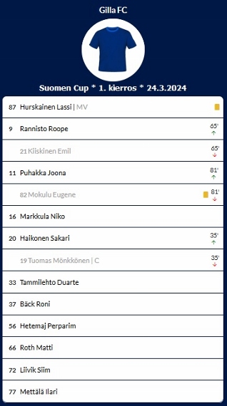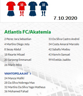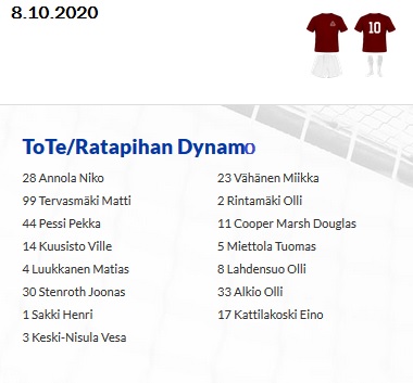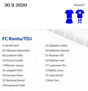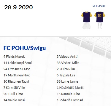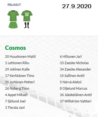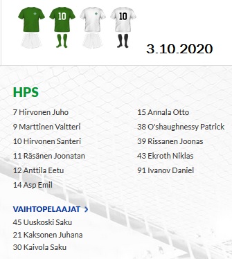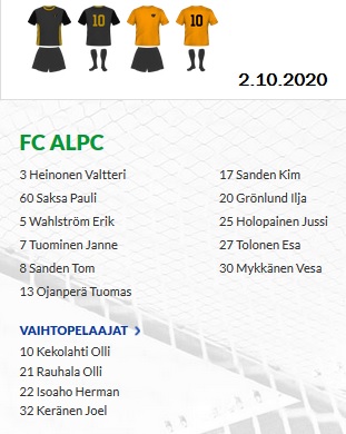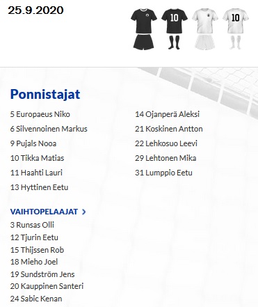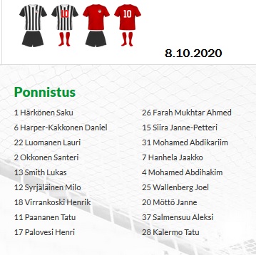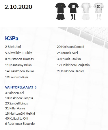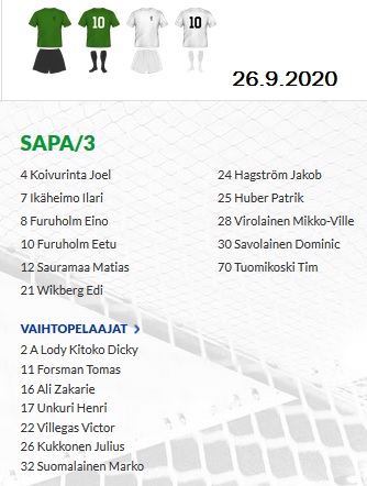 Vaihdosta: Yusuf Jama, Riku Ortega ja Valtteri Frantsi * vaihtoon: (p) Justus Sanden, (p) Victor Villegas ja (k) Aleksi Roitto.