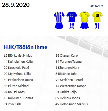 Täydet peliminuutit: (p) Kitoko Dicky A Lody, (p) Henry Jussila, (k) Teemu Keränen, (k) Olli Lappi, (h) Elias Santala, (h) Muhamed Bade ja (h) Alsel Karra.