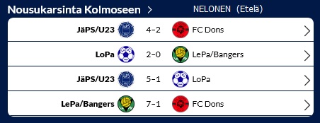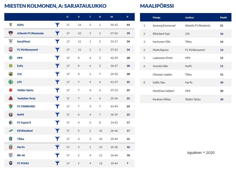 LPS (Laajasalo) * viidettä peräkkäistä kautta Kolmosessa.