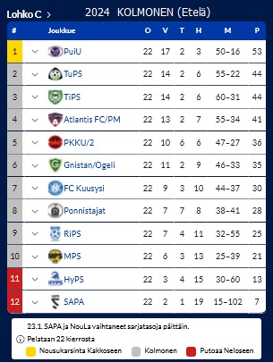 SAPA * toista peräkkäistä kautta Kolmosessa.