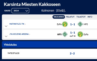 HPS * 15. peräkkäistä kautta Kolmosessa.