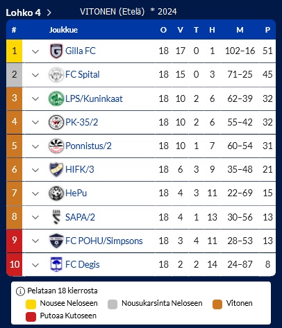 Vain viimeiseksi lohkossa jäänyt FC POHU/Simpsons Helsingistä.