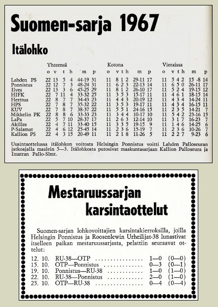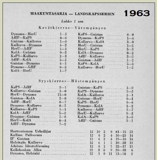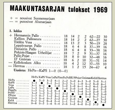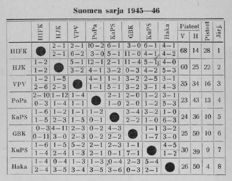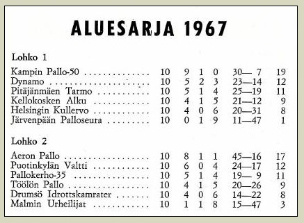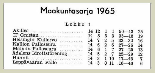 HJK oli toinen, KaPS kuudes, HPS sijalla 7. , Ponnistus 8 ja Helsingin Hukat putosi maakuntasarjaan sijalta 9.