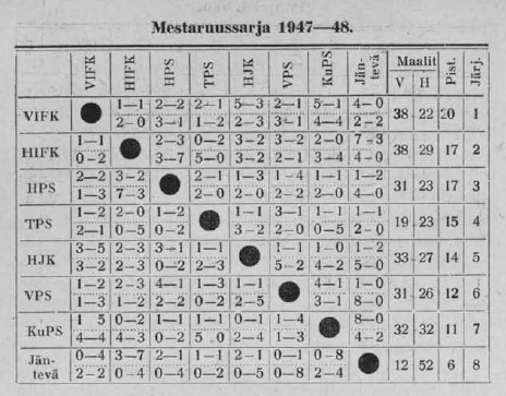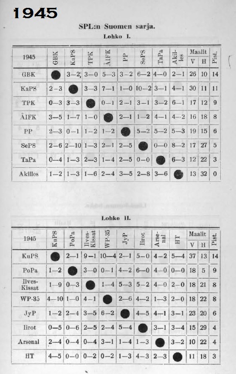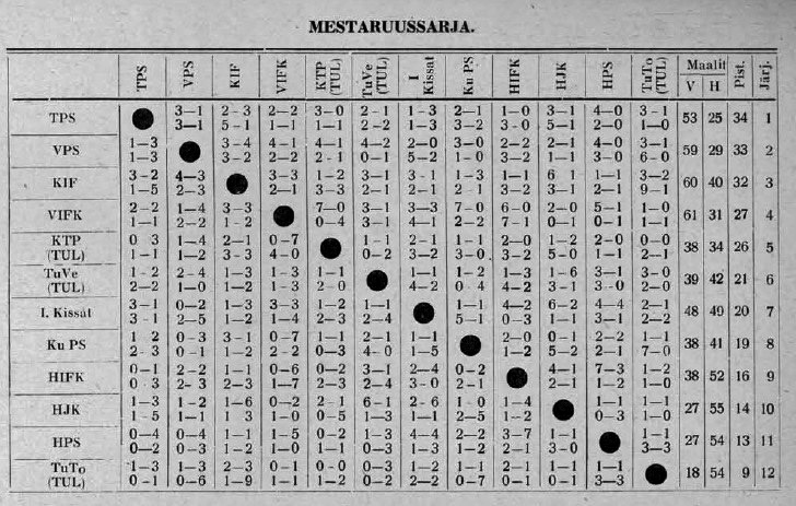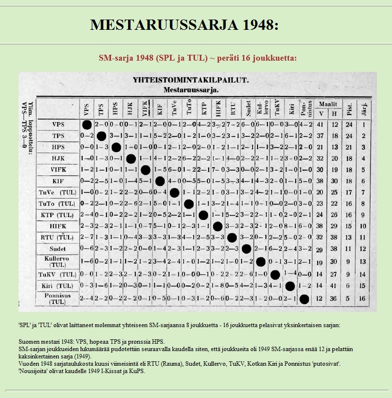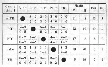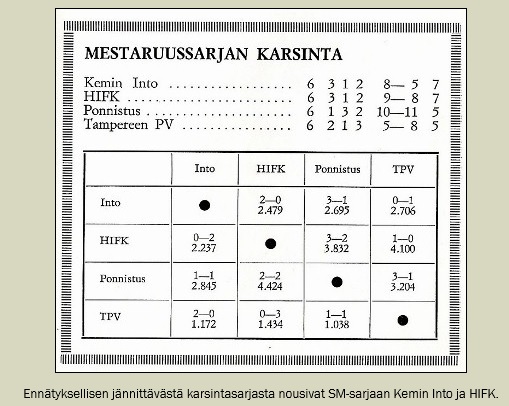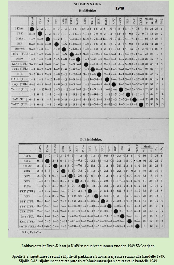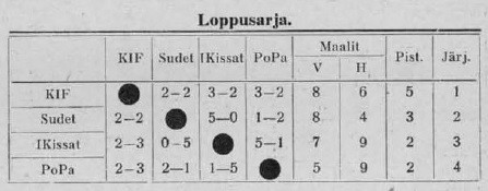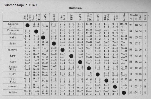 SM-sarja 1950 ~ KIF kuudentena ~ nousija Kullervo putosi saman tien.
