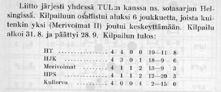 SPL:n Jalkapallokirja 1950 esitteli helsinkiläisjoukkueet Suomensarjassa seuraavasti: