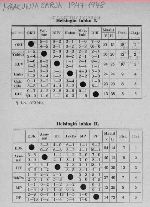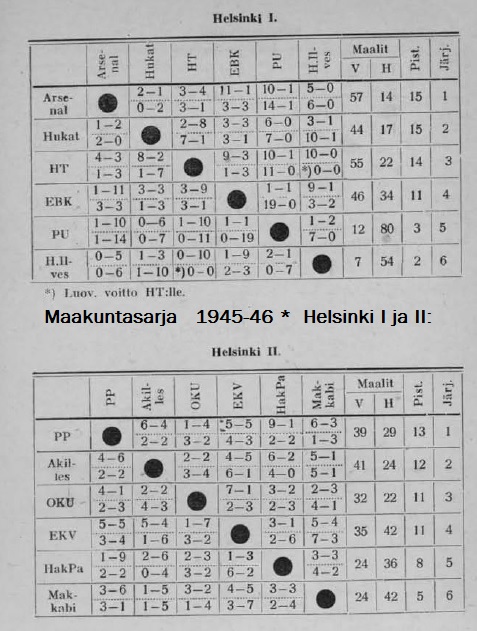 SPL:n Jalkapallokirja 1950 esitteli Maakuntasarjan etelälohko A:n helsinkiläisjoukkueet seuraavasti: