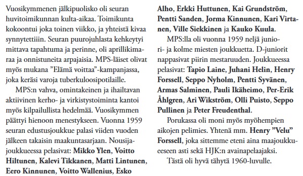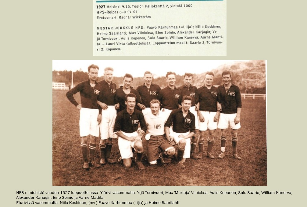 Helsingin Palloseura (HPS) - puheenjohtaja T.Ylimaa - sihteeri A.Purhonen - paita vihreä, housut valkoiset.