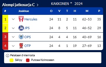 JS Hercules neljättä peräkkäistä kautta Kakkosessa.