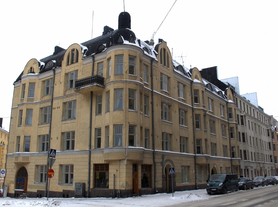 * As Oy Kotirinne, Pohj. Rautatiekatu 11 – Nervanderinkatu 1 – Ainonkatu 4 (arkkitehti Usko Nyström 1911). Myöhäisjugendtyylisen asuintalon rakennutti joukko opettajia.