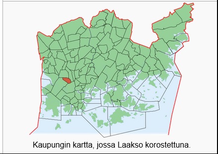 (Wikipedia, 2020): Laakso (ruots. Dal) on Helsingin kantakaupungissa, Mannerheimintien, Reijolankadun, Nordenskiöldinkadun ja Keskuspuiston rajaamalla alueella sijaitseva kaupunginosa. Naapurialueita ovat Töölö etelässä, Meilahti lounaassa, Ruskeasuo pohjoisessa ja Länsi-Pasila idässä.