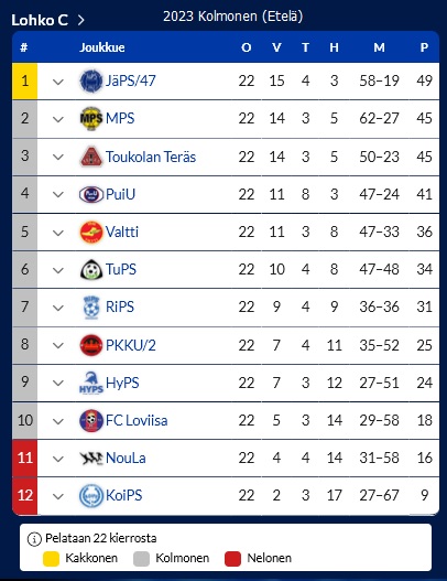 Hyvinkään Palloseura (HyPS) ~ kahdeksas peräkkäinen kausi Kolmosessa (Uusimaa/Helsinki).