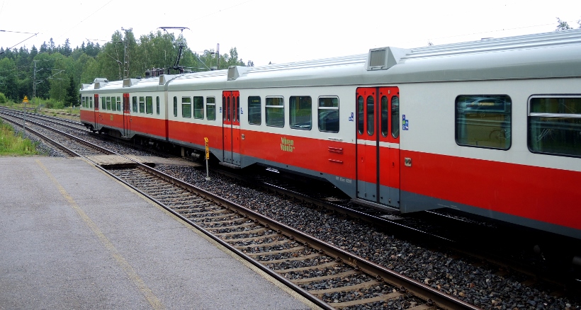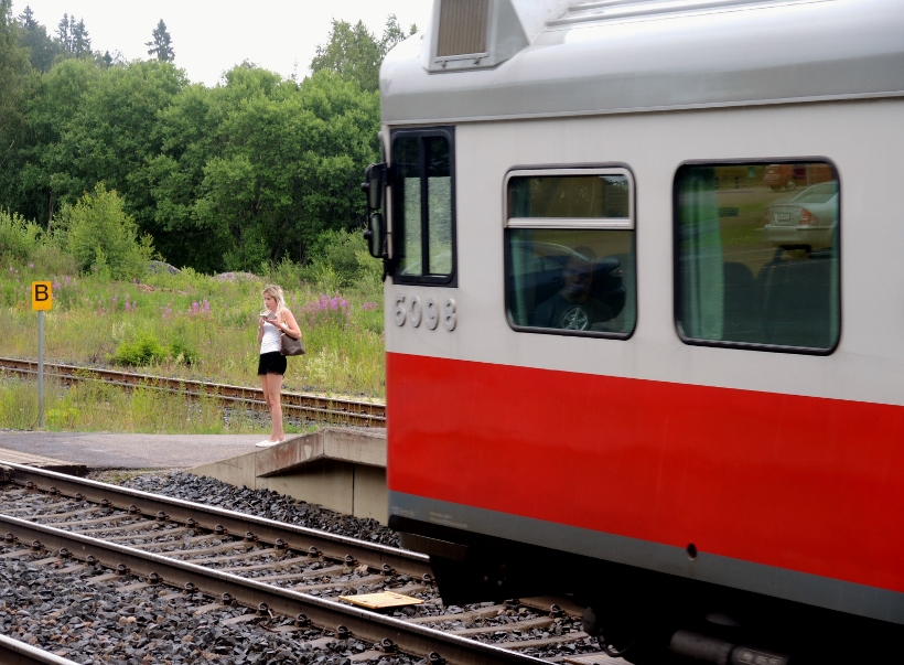 Järvelän rautatieasemalla - henkilöjuna Riihimäeltä saapuu ja jatkaa pysähdyksen jälkeen Kouvolaan ~ 3.7.2016 (S&J).
