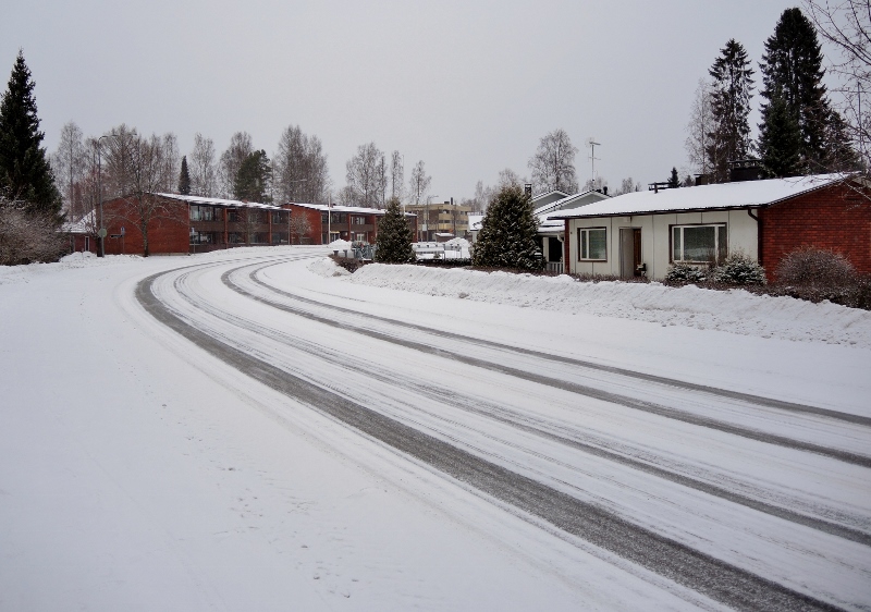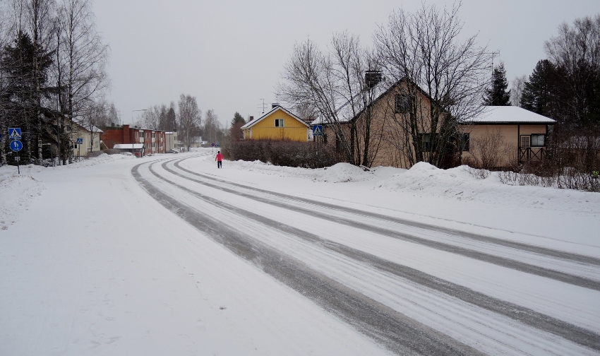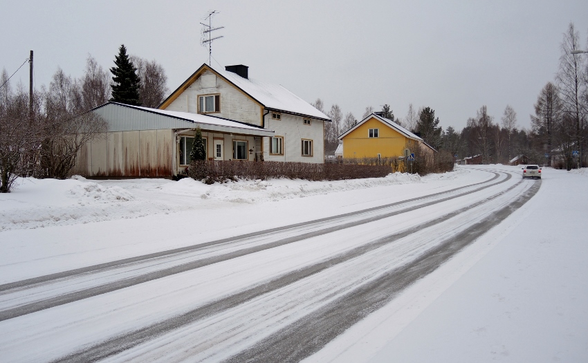 Entisen puhelinkeskuksen nurkilla näkyvissä vielä "vanhan Puulavedentien" linjaus: