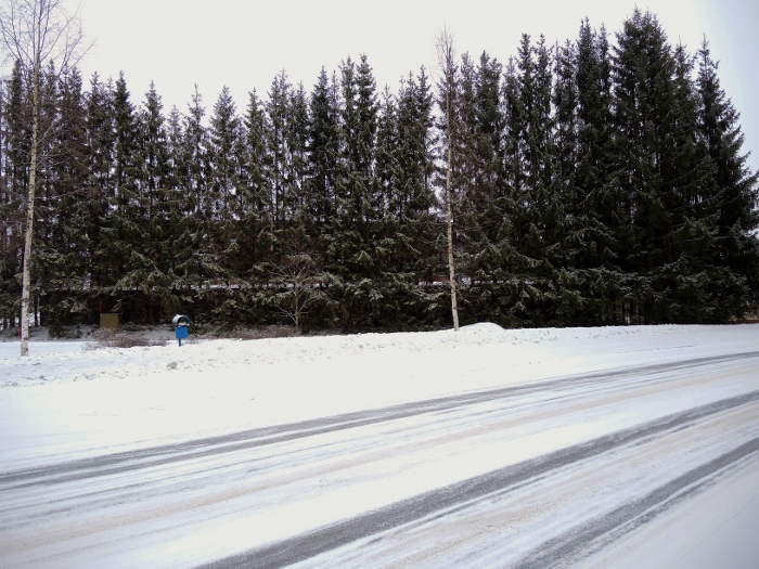 Vanhaa katutielinjaa edelleen alemmaksi rannan suuntaan - muhkea kuusiaita entisen puhelinkeskuksen jälkeen (Vassisen tonttirajoilla) - 15.8.2024 (S&J).