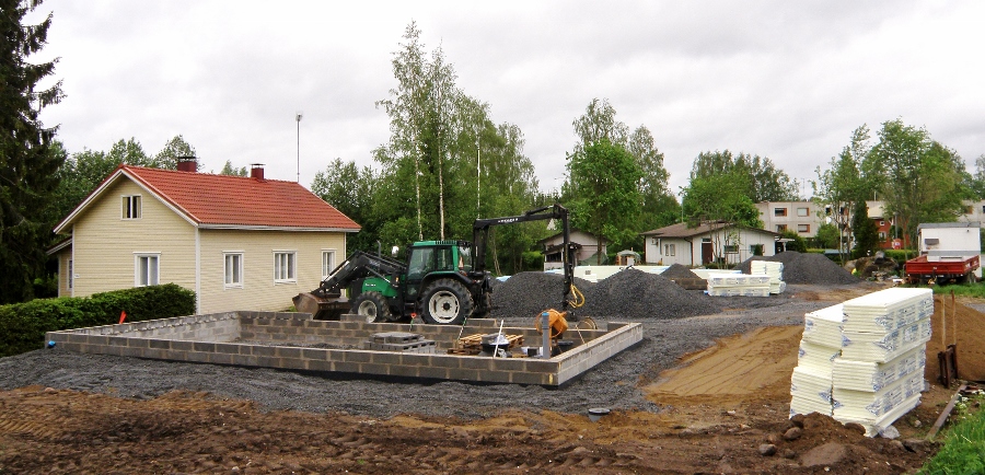Ent. puhelinkeskusrakennuksen etualan tontille alkoi nousta uusi yksittäinen asuinrakennus vasta keväällä 2014 ~ kuvattu 29.5.2014 (S&J).