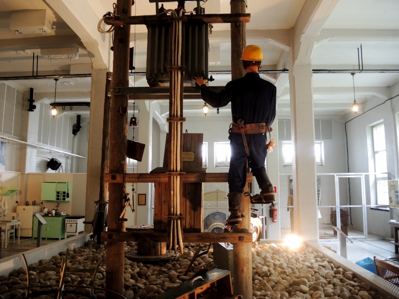 Sähkötuotantopuolen museotiloissa on entisöity entisaikojen työntekijän keittiötilat.