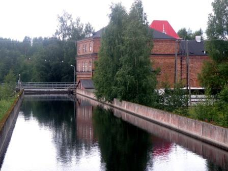 Kissakosken voimalaitosrakennus kuvattuna 22.7.2009 (S&J) kosken yläjuoksun puolelta.