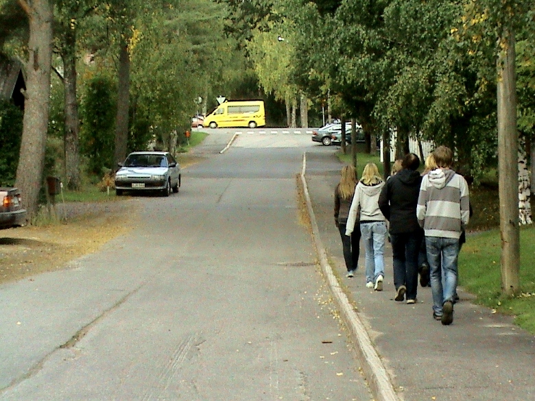 Erittäin huvittuneita olimme siitä, kun vastapäätä asuva Välisalon Elli kiiruhti kiireesti tielle