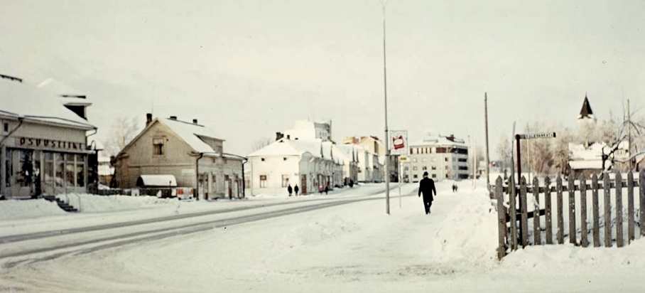 1980-luvulta alkaen Kauppakadun varren puutalot purettiin uusien kerrostalojen ja liikennejärjestelyjen alta. Kuvan lähetti 15.10.2012 nimim. 'Kimpinen'. Huomaa - kuvassa ei näy yhtään autoa!