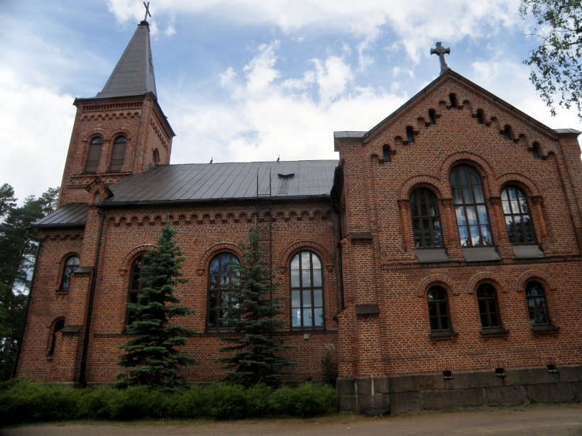 Nimimerkki "Niera" kuvasi Miehikkälän kirkon kesäkuussa 2012 (Wikipedia * CC BY-SA 3.0).