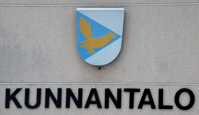 Suomenniemen vaakuna kunnantalon seinässä (S&J - 21.1.2012).