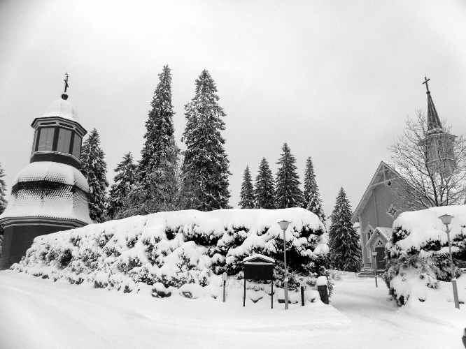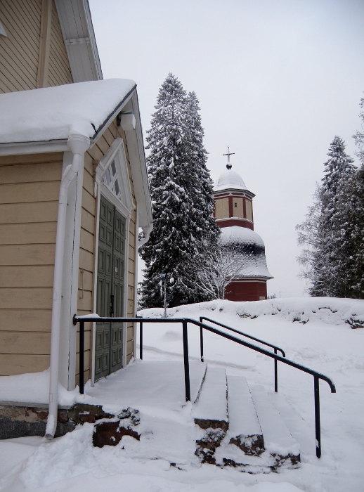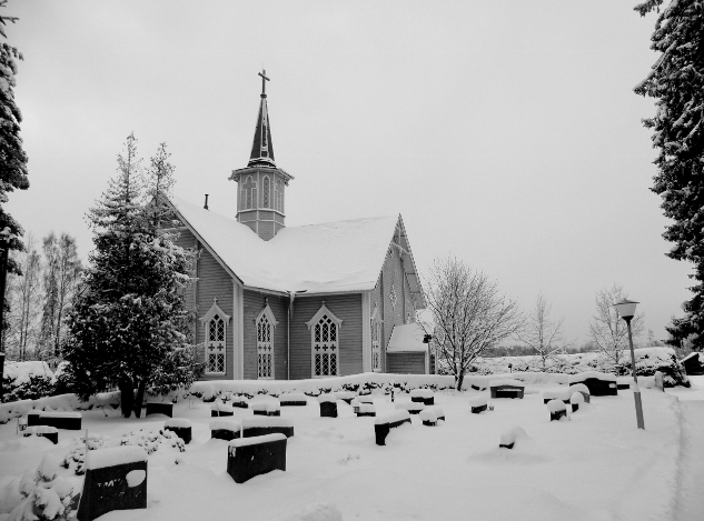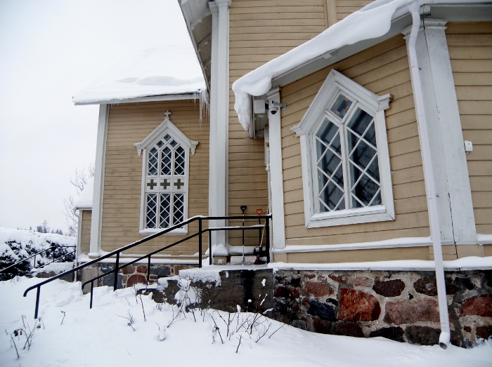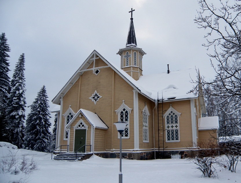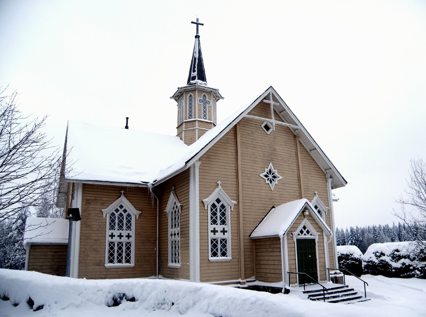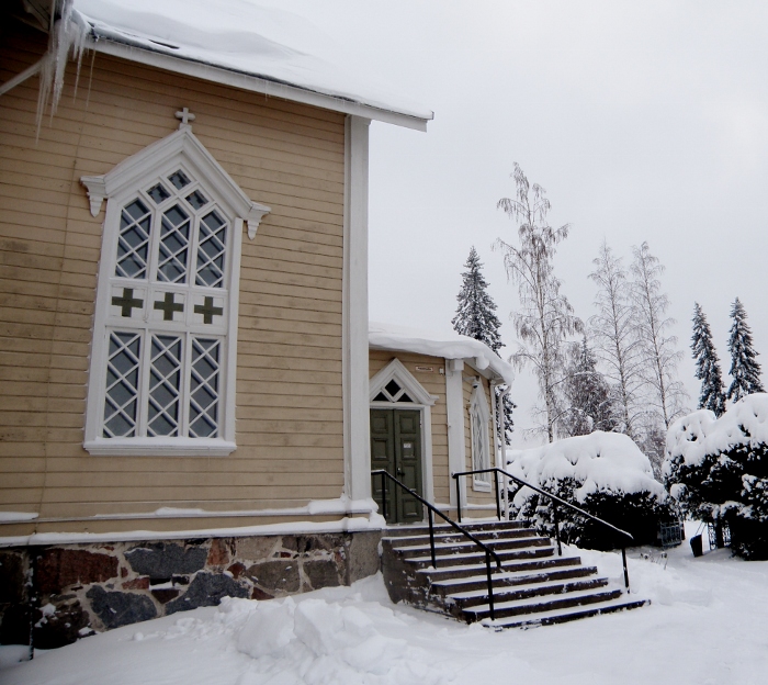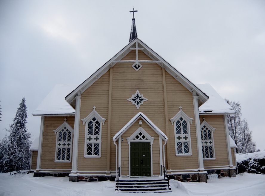 Nähtävyyksiä: Suomenniemen puukirkko vuodelta 1866.
