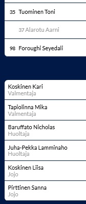 Joukkueeseen on saatu enemmän pelaajia kuin alun perin osattiin toivoakkaan. Koko edustusjoukkueen vahvuudeksi Salminen arvioi noin 25 henkilöä, joista noin 15 on paikalla seuraamissani harjoituksissa Hirsilän kentällä. Tosin osa seuran ikämiehistä käy pelaamassa myös edustuksen peleissä.