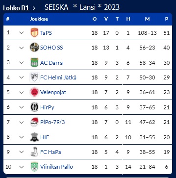 – Noususta ei voi vielä haaveilla, mutta jos lohkon keskikastissakin pysytään, niin se on jo hyvä. Kausi alkoi häviöillä ja tasapeleillä, mutta nyt olemme saaneet kolme perättäistä voittoa. Pelaajien lähtötason hajontaan nähden olen oikein tyytyväinen näihin tuloksiin. Kaikki pelaavat ja koitetaan saada siitä pelistä mahdollisimman hyvää, Salminen kertoo.