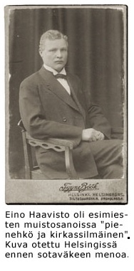 Eino on ilmiselvästi kaatunut. Mutta minkä sodan sankari hän on? Vapaussota päättyi jo keväällä 1918 ja talvisota alkoi vasta marraskuun viimeisenä 1939. Aivan kuin tämän tosiasian varmistamiseksi Haavistojen sukuhauta sijaitsee vapaussodan muistomerkin ja viime sotien sankarihauta-alueen välimaastossa..