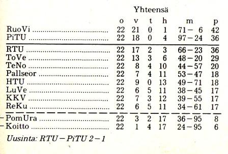 PTU (Pihlava) nousijana Suomensarjan länsilohkossa ~ sijalle 9/10 - putosi takaisin Maakuntasarjaan.