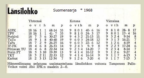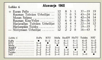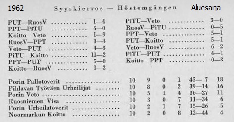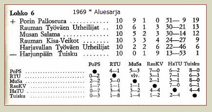 Aluesarjassa (4. sarjataso) kaksi porilaisjoukkuetta (1969): PoPS ja MuSa + Tuisku (Ulvila).