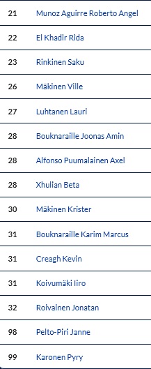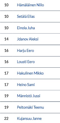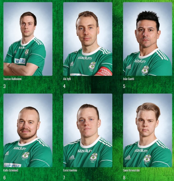 Hyökkääjät: Ville Aaltonen, Jarmo Juvonen, Pasi Lehtinen, Arto Rosenholm ja Tapio Grönfors.