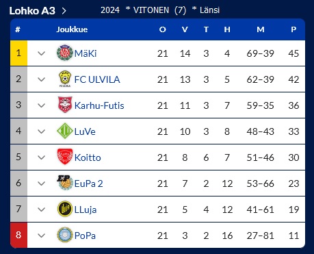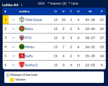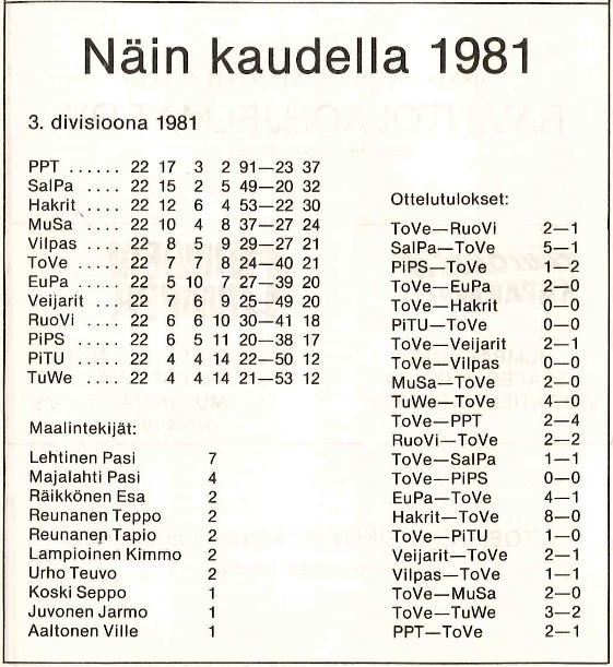 ToVe 3. divisioonassa - sarjataso säilyi ennallaan.