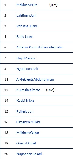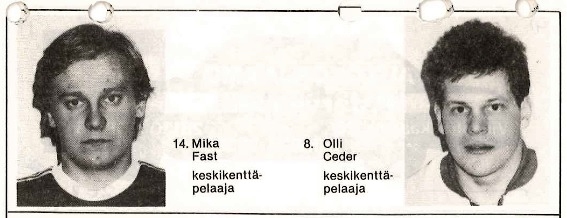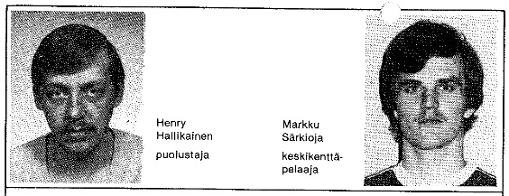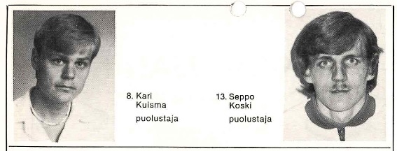 Puolustajat: Seppo Wallin, Timo Asuma, Teuvo Välitalo, Tapani Lihavainen, Paavo Peltola, Jarmo Mäkinen, Jukka Mäkinen ja Timo Taipalmaa.